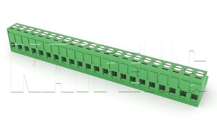 Pluggable Terminal Block MATERIAL:M3.0 Steel Galvanized contact: Phosphor bronzePin header:-Housing: PA66,UL94V-0ElectricalULIECRated voltage300V 320V Rated current15A20AContact resistance20mΩInsulation resistance500MΩ/DC500VWithstanding voltage AC2000V/1minWire range28-12AWG 2.5㎜2MechanicalTemp.rang-40℃~+105℃ Max.soldering+250℃,5se