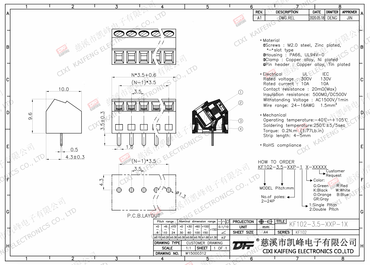 Material:①Screws : M2.0 Steel Zinc plated,"-"slot type ②Housing : PA66, UL94V-0 ③Reed : Phosphor bronzeNi platedorStainless steel