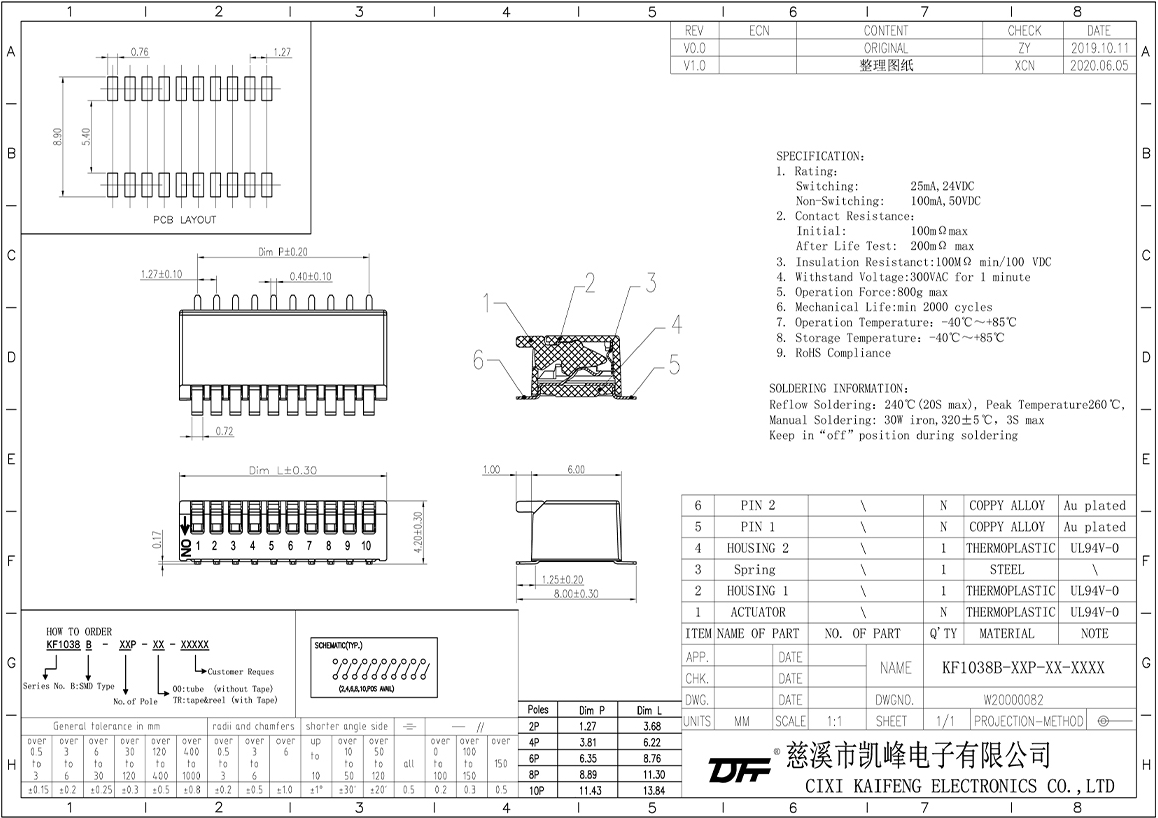 Dip Switch SPECIFICATIONSRatingSwitching25mA,24VDCNon-Switching100mA,50VDCContact ResistanceInitial100mΩ/MaxAfter Life Test200mΩ/MaxInsulation Resistance100mΩ Min/100 VDCWithstand Vol