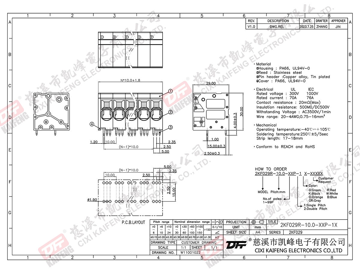 PCB Terminal Block 2KF029R-10.0mm
