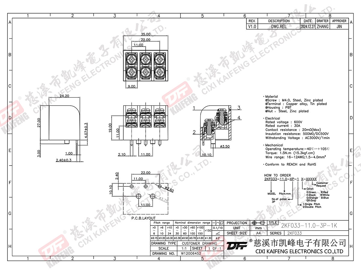Barrier Terminal Block 2KF033-11.0mm